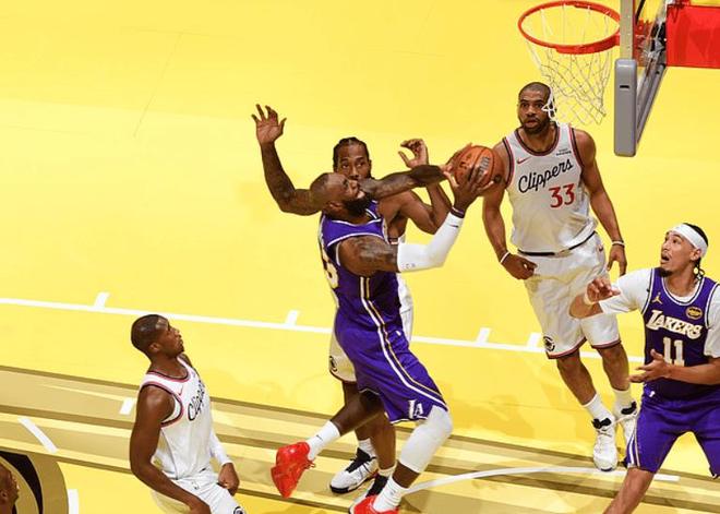 下半场比赛开始,易边再战,詹姆斯大步流星,冲击篮下挑篮得手,揭开第三节比赛序幕,科林斯空切内线飞身上篮予以还击,里夫斯沿着底线,反身灵动上篮稳稳命中,东契奇借助掩护,面对祖巴茨超远三分还能打进,。八村塁旋风冲刺后的单手劈扣技惊四座,詹姆斯的急停中距离也正入网心。湖人在下半场先发制人,一度取得两位数领先优势,但是好景不长,很快他们又陷入得分荒,被快船打出一波反击高潮追平比分,双方又回到同一起跑线。三节比赛打完,湖人98-93领先快船5分。末节决战,湖人再度起势,快船防守有些懈怠,被湖人不断冲击内线得分。