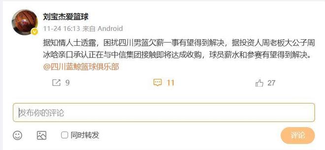 根据媒体人刘宝杰老师的消息,四川队和中信集团即将达成收购协议,如果顺利完成并购不仅可以解决球员和教练组的薪资问题,新赛季他们也能继续征战CBA。并且中信集团是大型央企,资金和背景都非常的雄厚,有中信集团进入未来球队的引援等也会更加的便利,还有就是外援萨姆纳可能会留下,前国青U18队长段睿琪也会留下,未来四川队还是非常值得期待的。