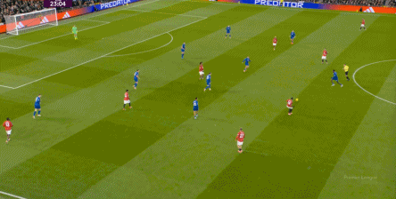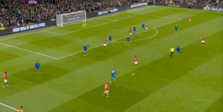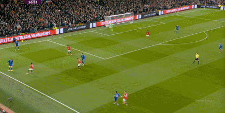 然而,比赛的局势早已被埃弗顿的策略所决定,哪怕换上了芒特,对手也不会给你多少在广阔空间里自如联系弱侧的机会,所以到了下半场,尤其是在埃弗顿体能还能维持的时候,曼联大部分的进攻选择只能是传中: