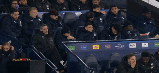 第30分钟,镜头给到场边,哈兰德等人替补待命