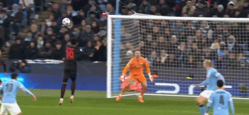 第76分钟,哈兰德停球射门,皮球高出横梁