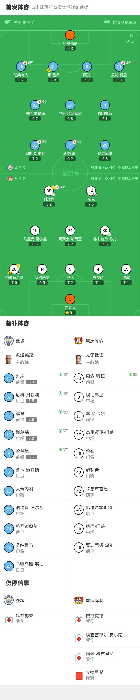 剑南春丨曼城0-2不敌勒沃库森,格里马尔多破门,希克建功